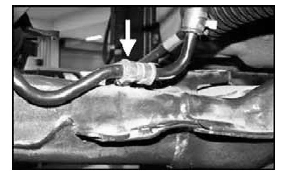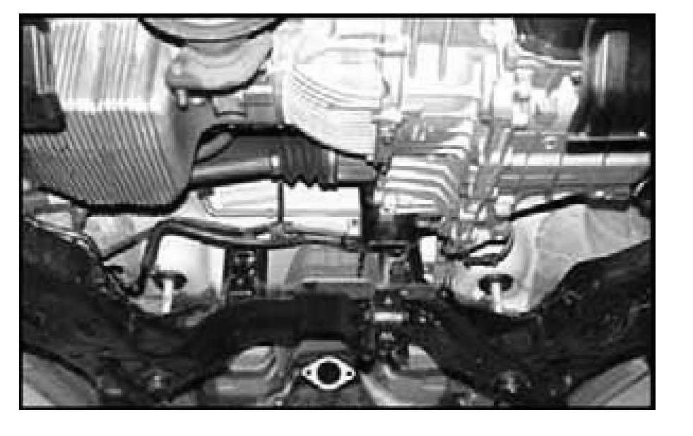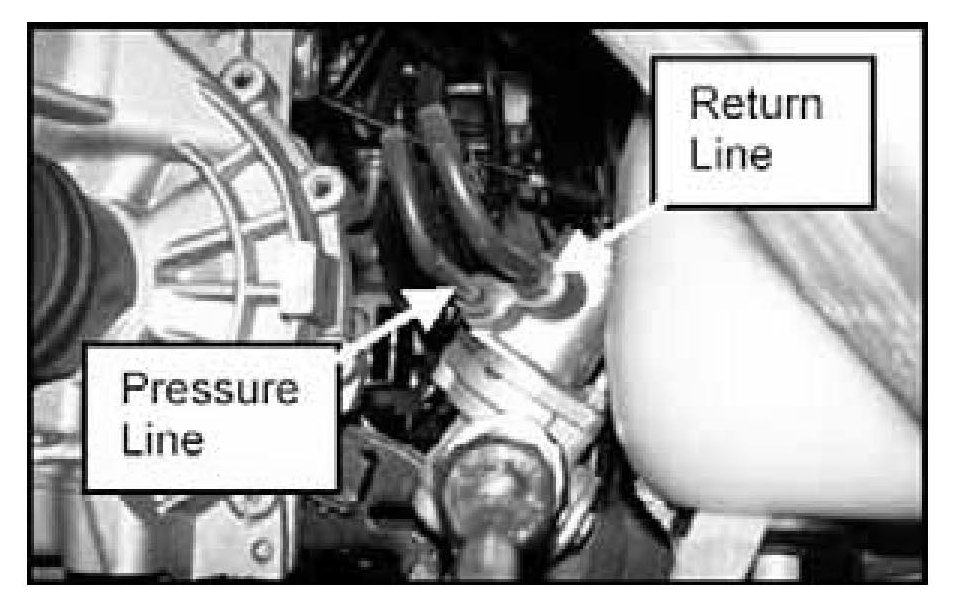 21. Remove the oil pressure and the return lines from the power steering gear box.