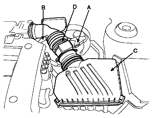 2. Air cleaner upper cover (C) and air intake hose(D).