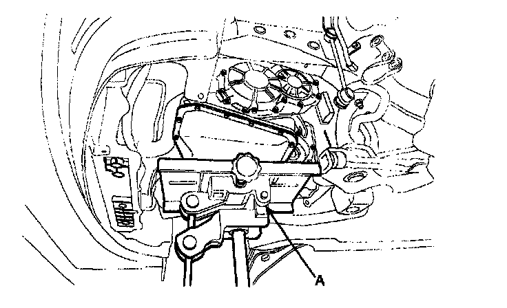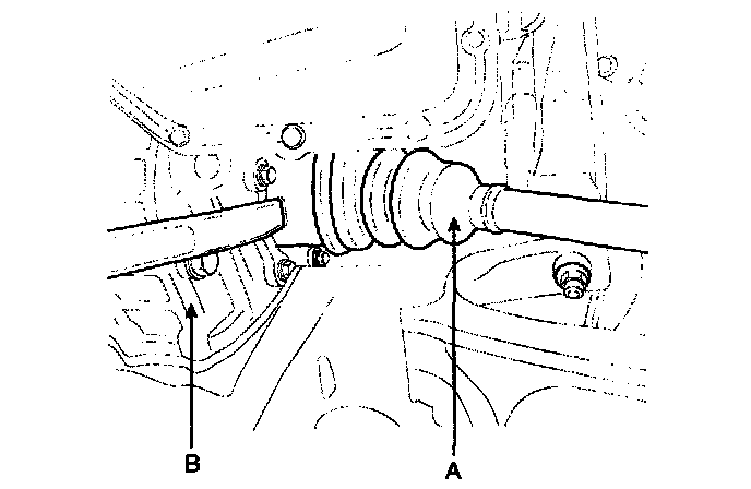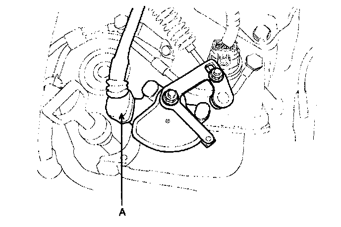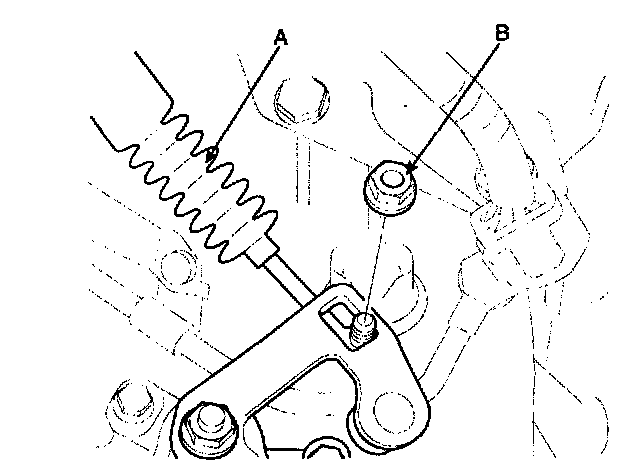 7. Remove the control cable (A) to transaxle range switch mounting nut (B).