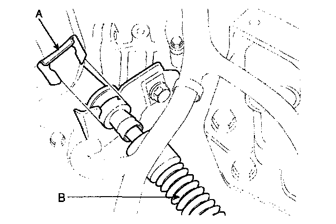 1. Disconnect the air flow sensor connector (A) and breather hose (B).