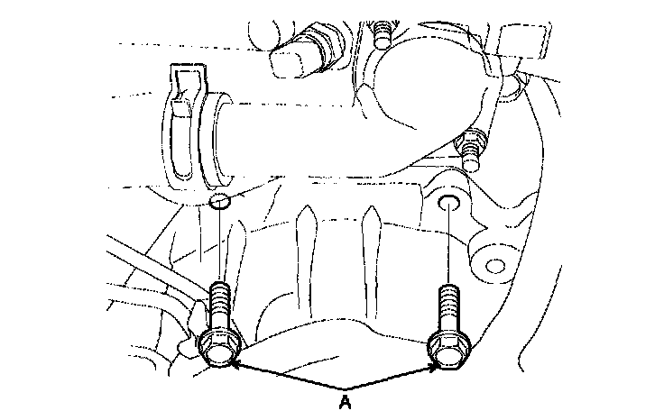 42. Remove the engine to the torque converter mounting bolts (A). (4EA)
