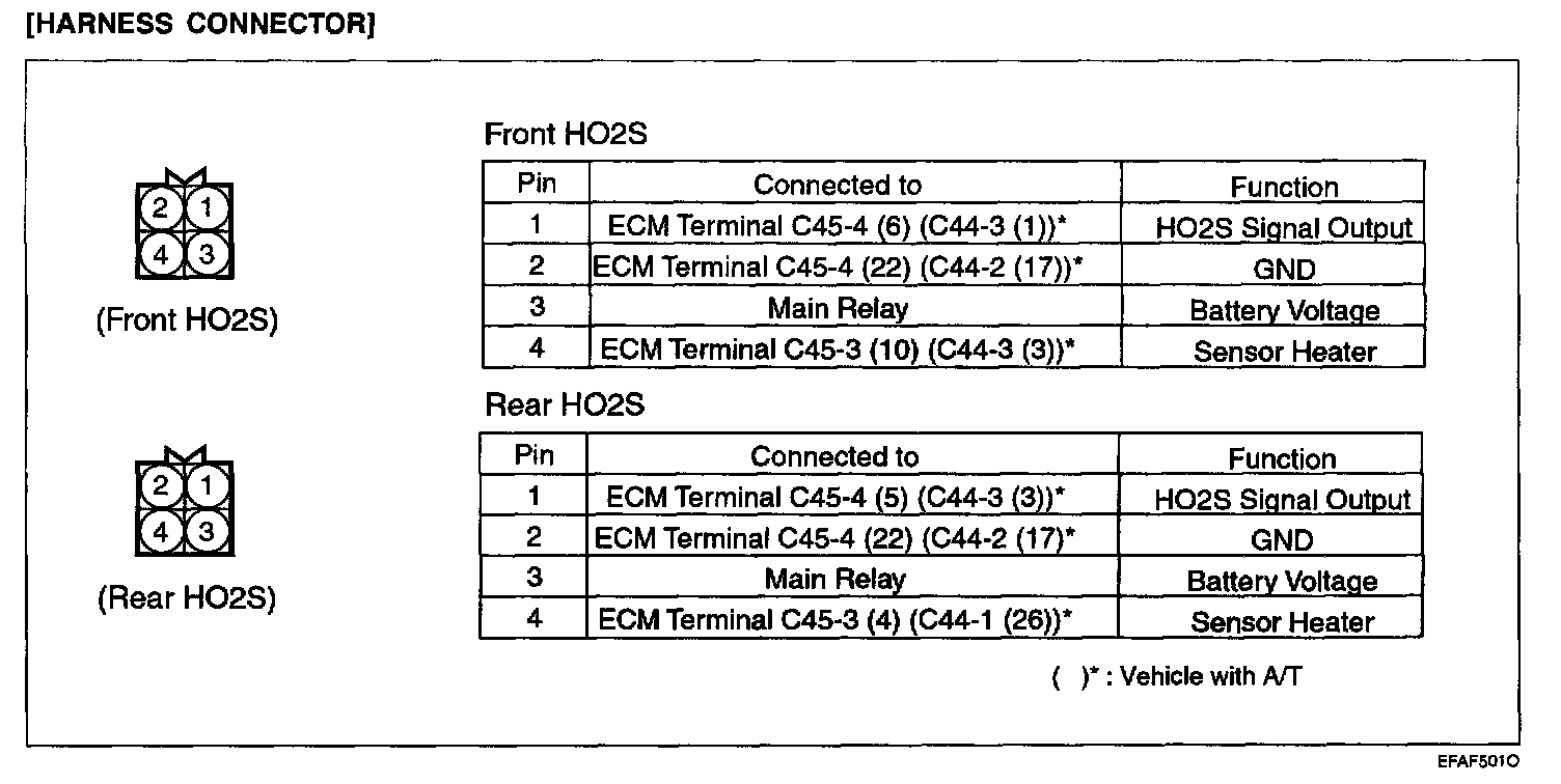 1. Disconnect the Heated Oxygen Sensor (HO2S) connector, and measure the resistance of heater between terminal 3 and terminal 4.