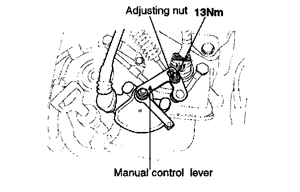 2. Loosen the control cable to manual control lever coupling nut to free the cable and lever.