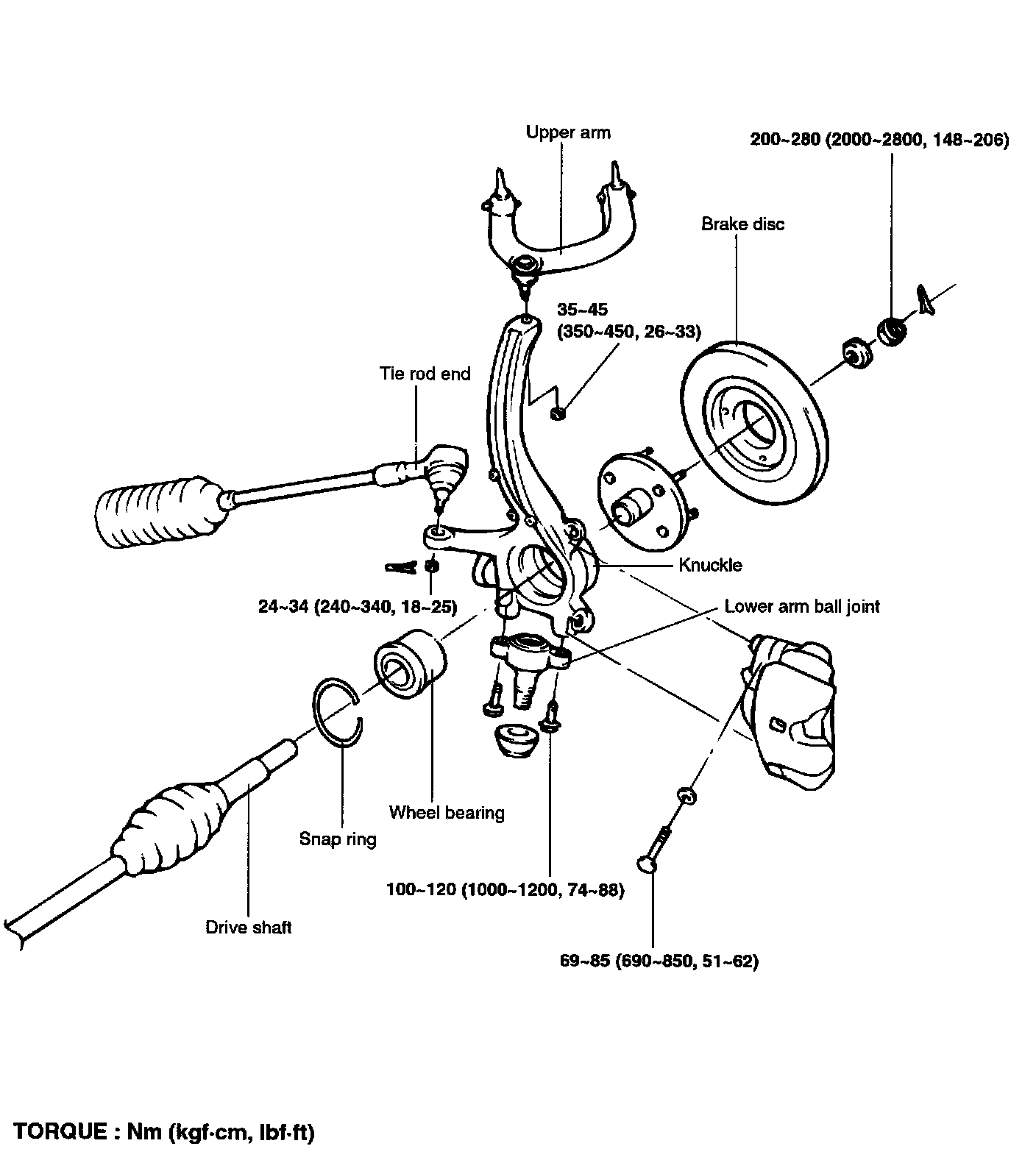 5. Tighten the hub to the knuckle to 200 Nm (2000 kgf-cm, 148 ft. lbs.) with the special tool (09517-21500).