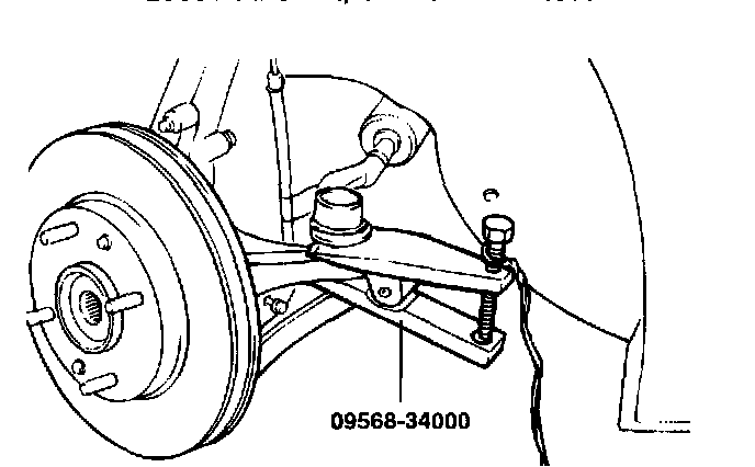 10. Using the special tool (09568-34000), disconnect the upper arm from the knuckle.