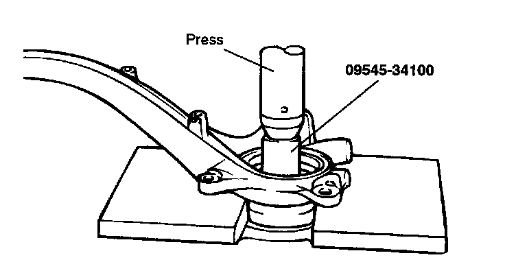 4. Using the special tools (09455-21000, 09545-34100), remove the wheel bearing inner race from the hub.