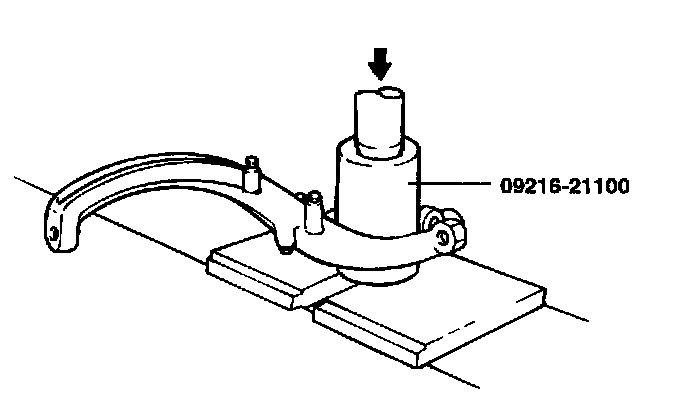 2. Using the special tool (09216-21100), press-in the bearing to the knuckle.