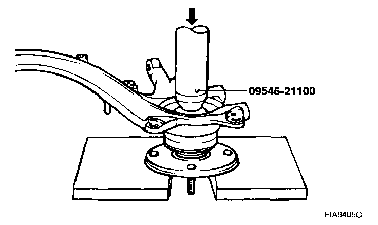 4. Using the special tool (09545-21100), press-in the hub to the knuckle.