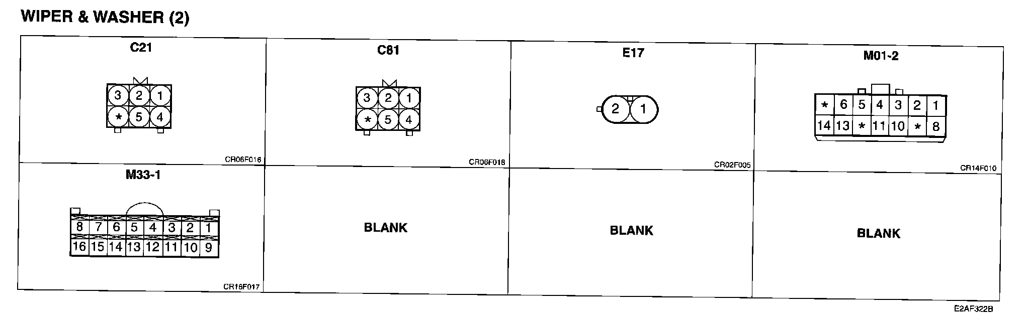 Wiper And Washer (2) Connector Pin Outs: