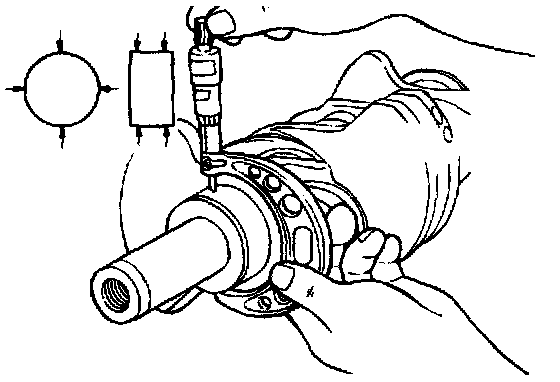 2. Inspect the crankshaft journal and pin for out-of-round and taper.