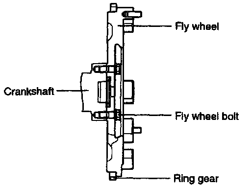 Flywheel installation bolt: 73 - 77 Nm (730 - 770 kgf-cm, 53 - 56 ft. lbs.)