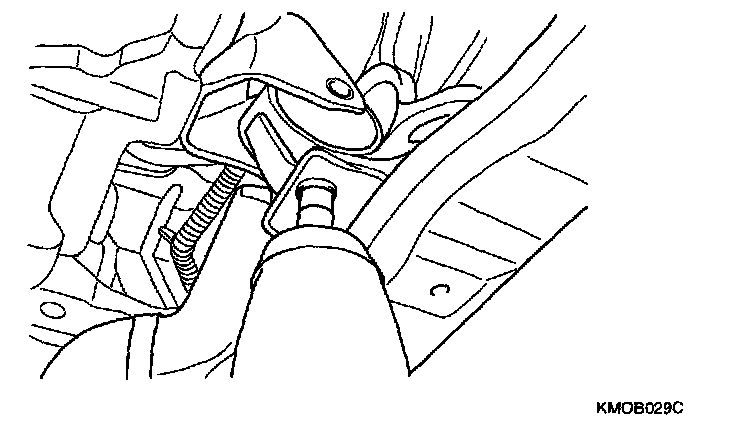 c. When installing the front roll stopper mounting bracket, be especially careful not to crush the insulator. If crushed, idle vibration may occur.