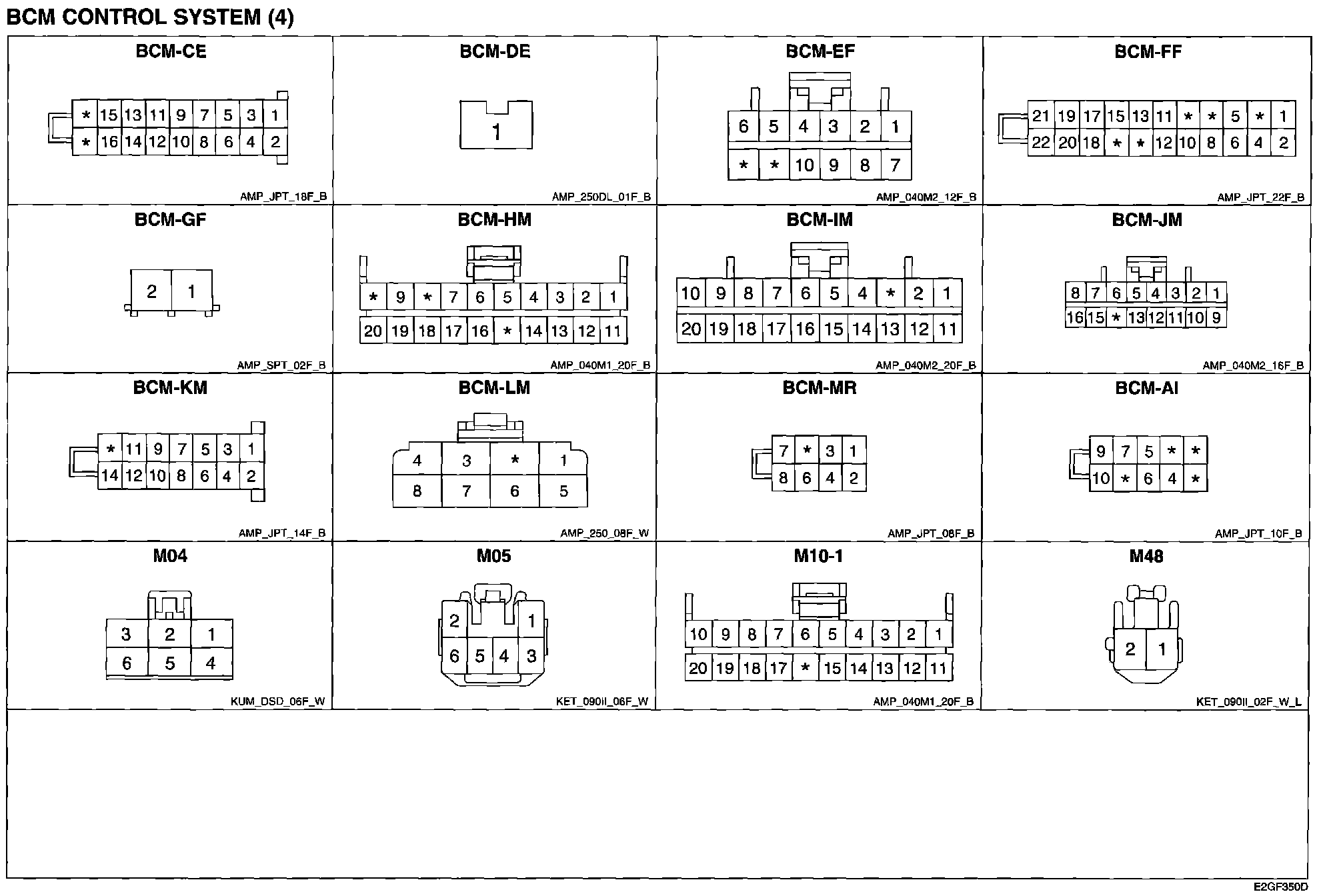 BCM Control System (4) Connector Pin Outs: