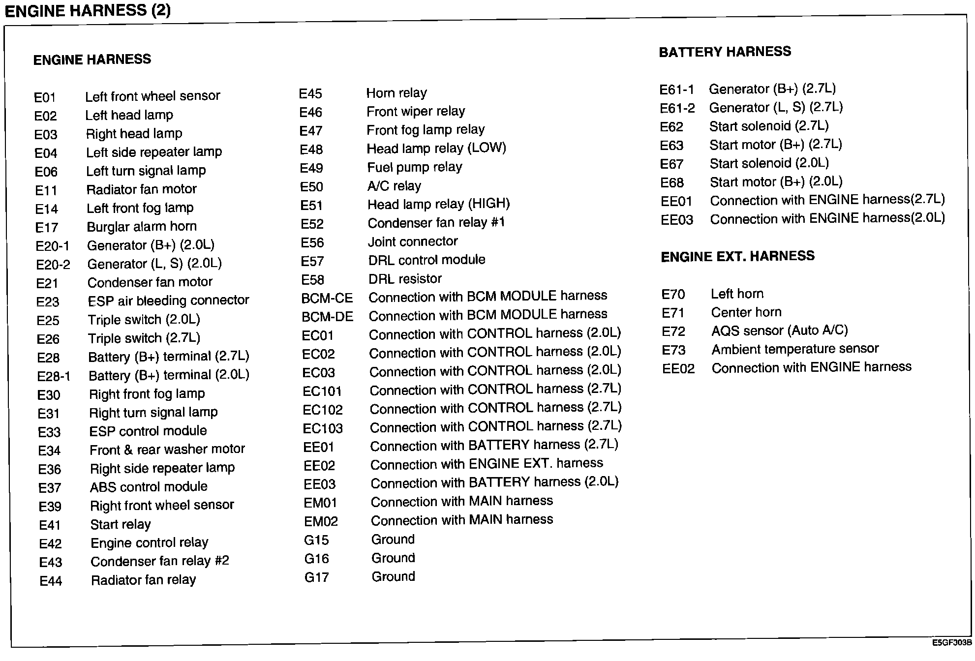Engine Harness Index: