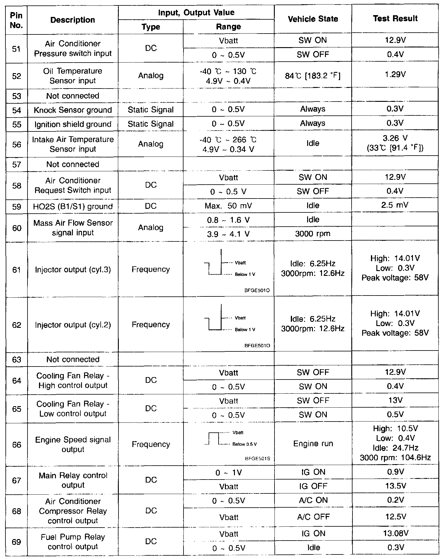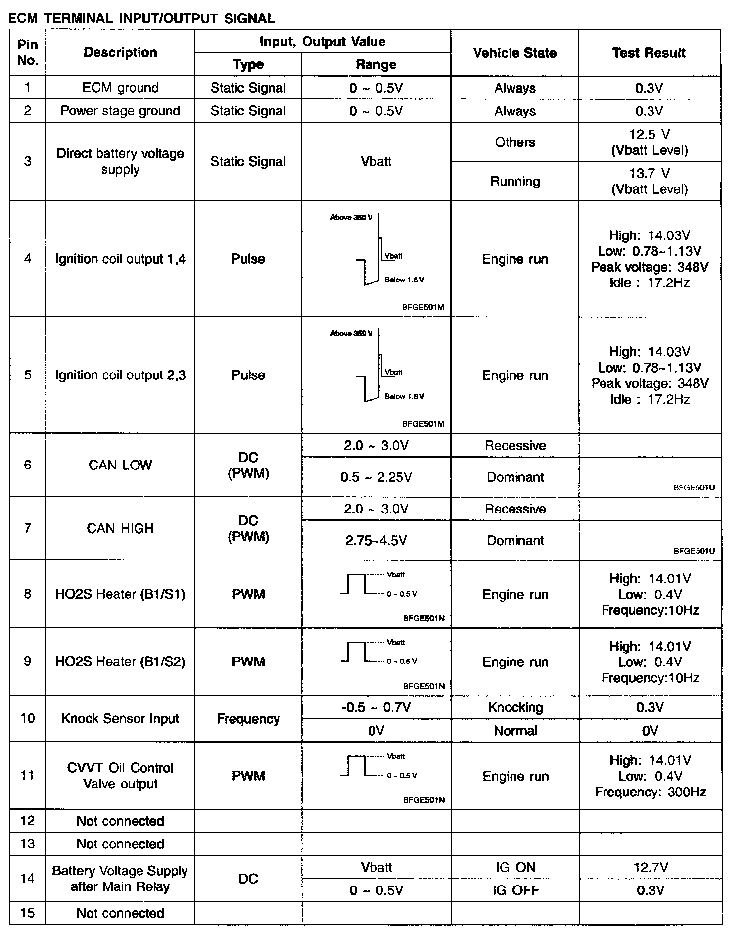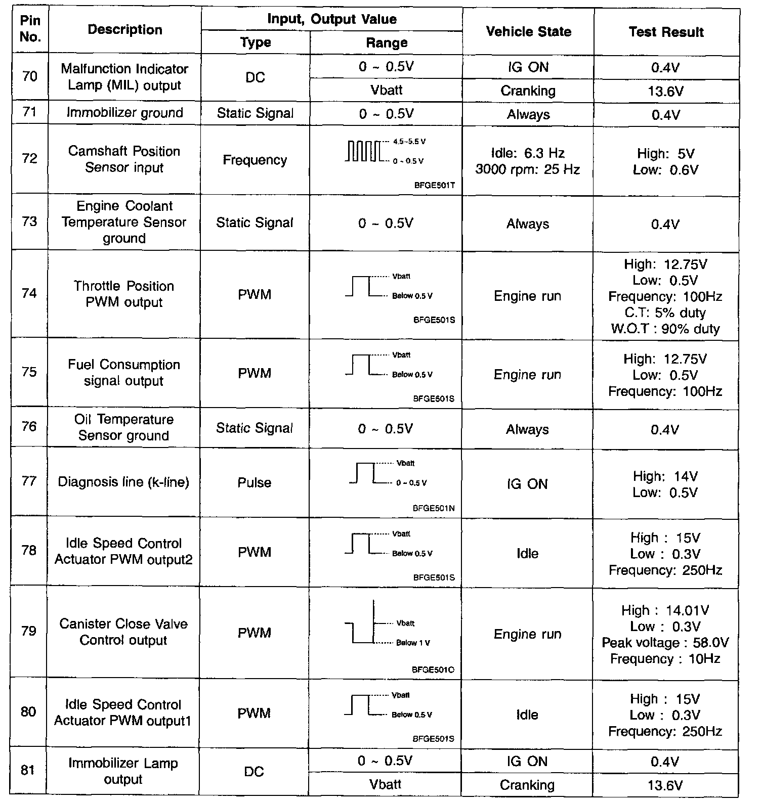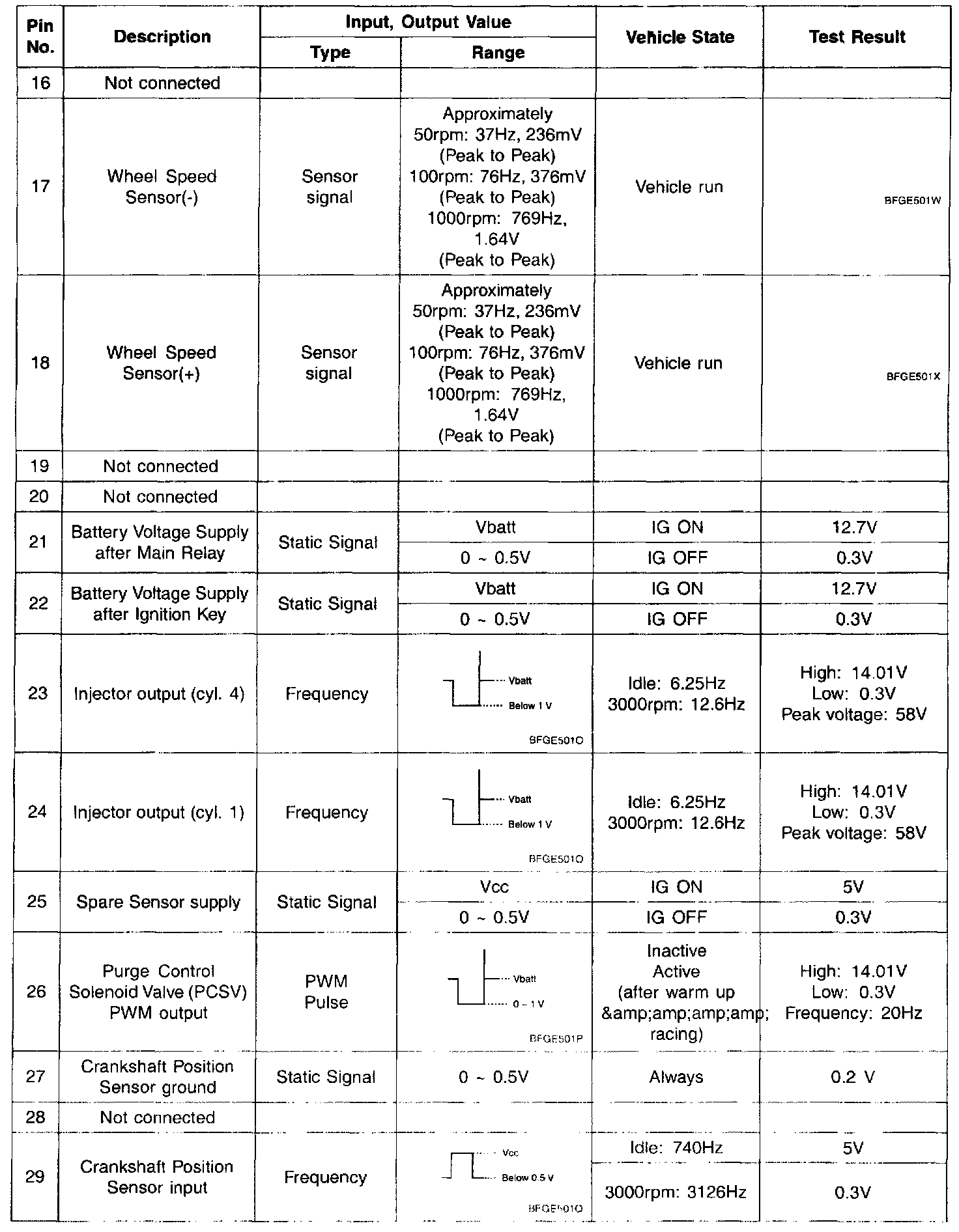 Pinout Values and Diagnostic Parameters