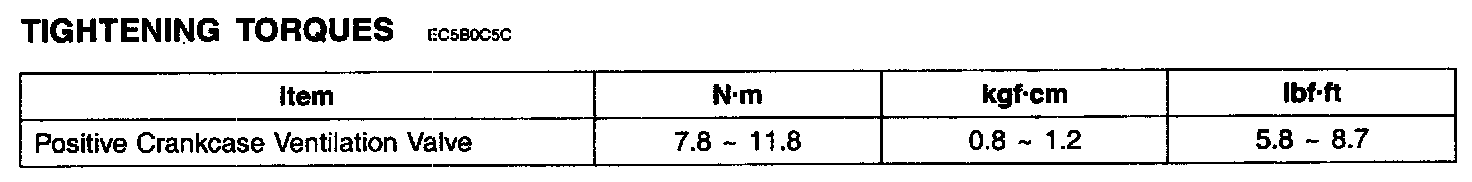 Positive Crankcase Ventilation Valve: Specifications
