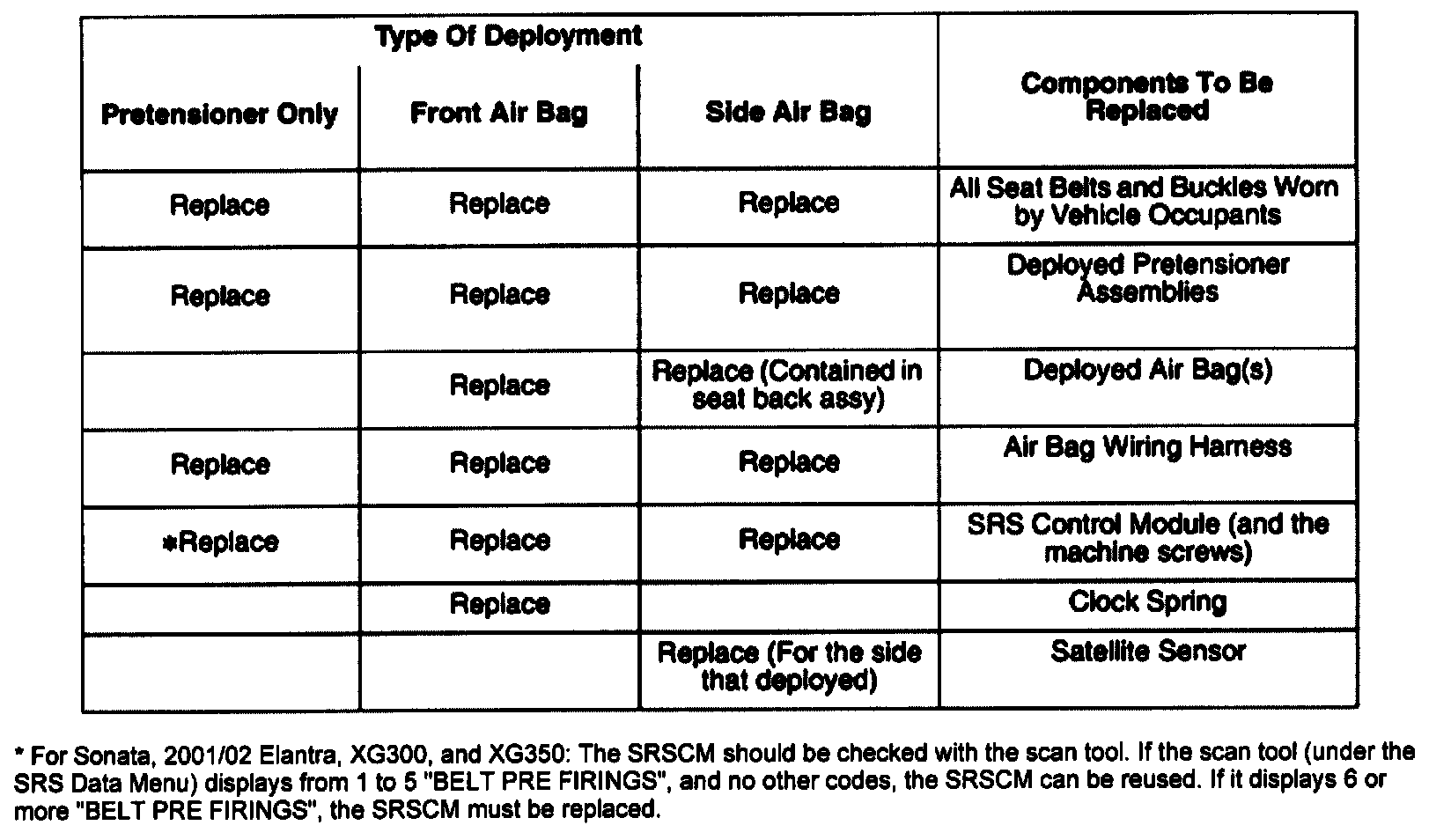 WARNING Failure to replace all of the parts listed may affect operation of the supplemental restraint system (SRS) operation in the event of a subsequent accident.
