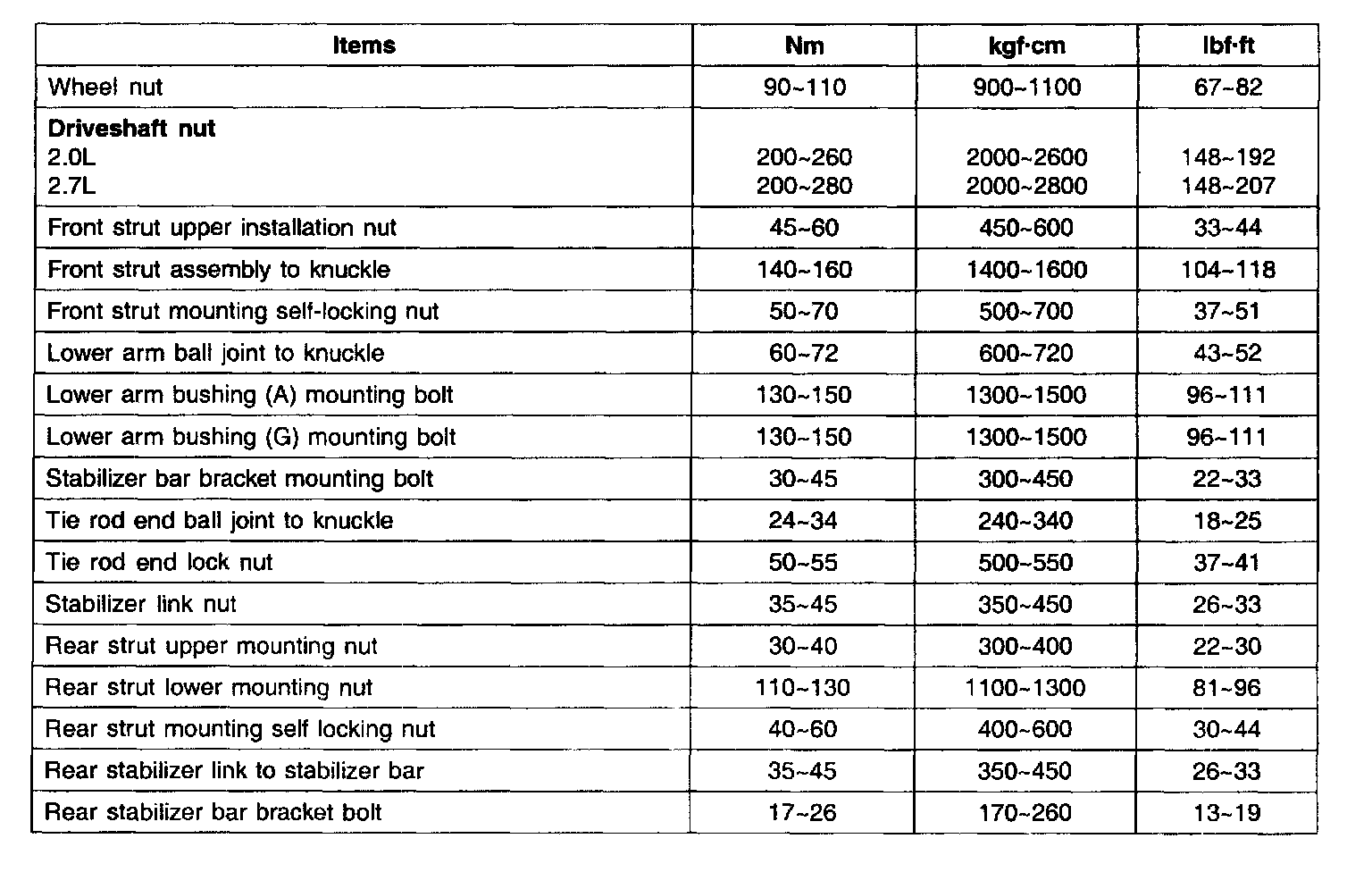 TIGHTENING TORQUE