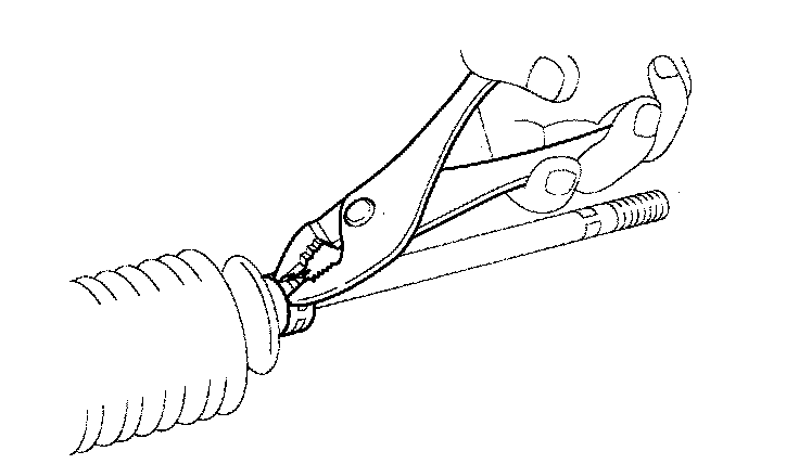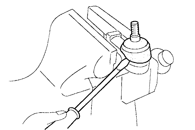 2. After mounting the tie rod end in a vise, remove the dust cover from the ball joint.