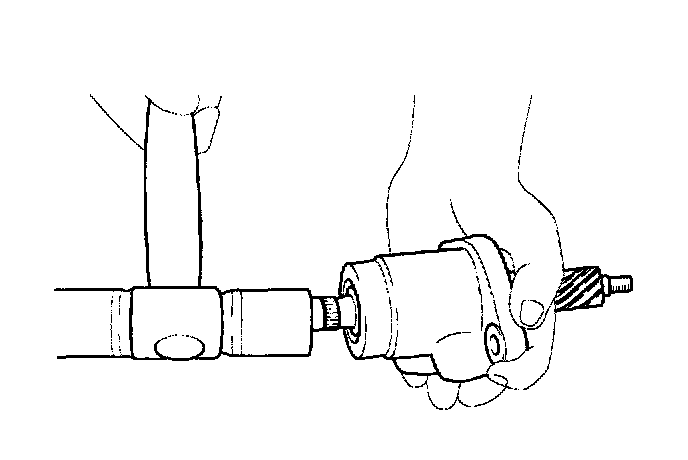 CAUTION: Be careful not to damage the rack cylinder bore of the rack housing.