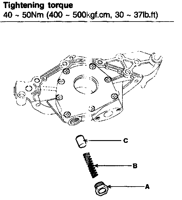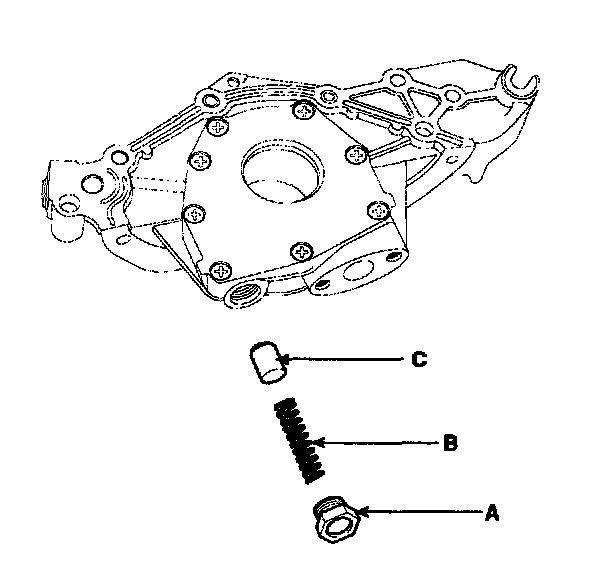Remove the plug (A), spring (B) and relief plunger (C).