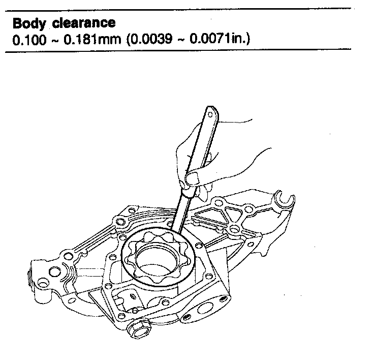 4. Inspect rotor body clearance. Using a feeler gauge, measure the clearance between the outer rotor and body.