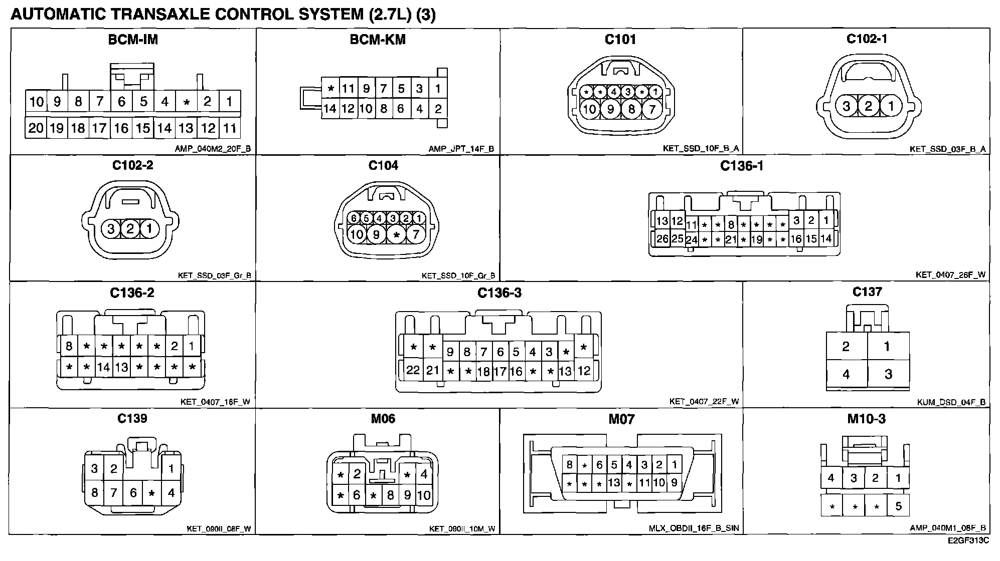 Automatic Transaxle Control System (3) Connector Pin Outs: