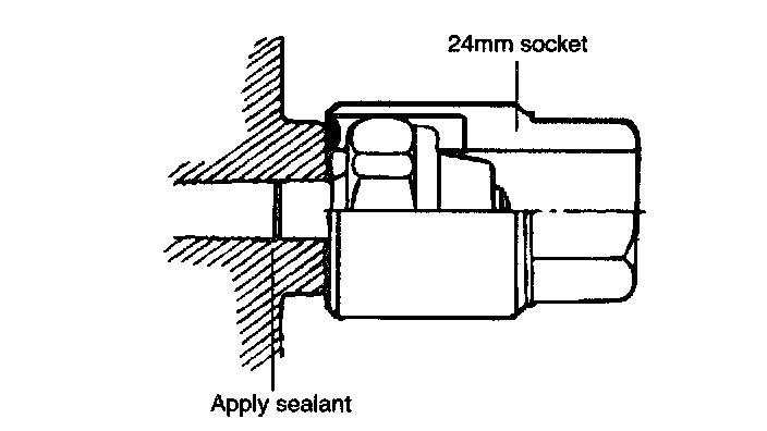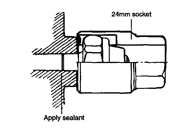 9. Using a 24 mm deep socket, install the oil pressure switch after applying sealant to the threaded area.