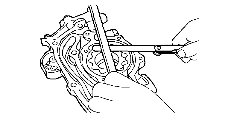 2. Assemble the rotor on the oil pump and then check the clearance with a thickness gauge.