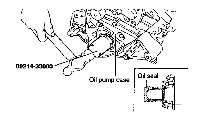 2. Install the oil seal into the oil pump case as tightly as possible, using the special tool (09214-33000).