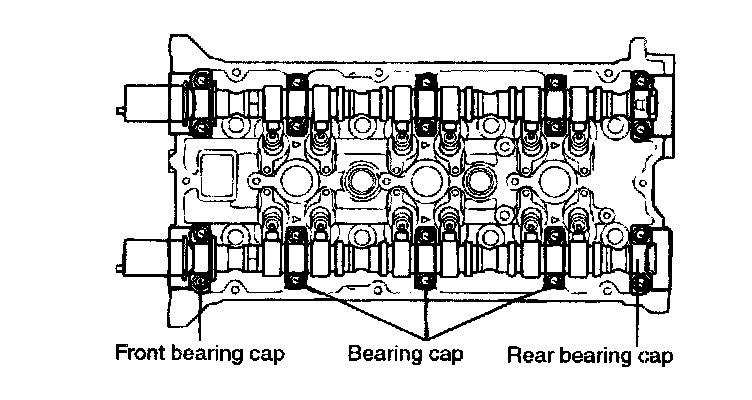 7. Remove the camshaft bearing caps.