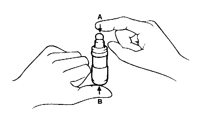 With the HLA filled with engine oil, hold A and press B by hand. If B moves, replace the HLA.