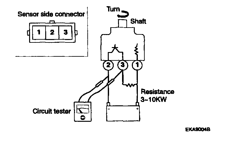 Vehicle Speed Sensor CheckRemove the vehicle speed sensor and connect a 3 - 10 K Ohms resistance as shown in the illustration.