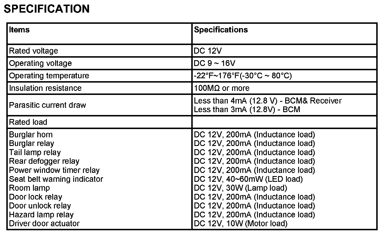 Body Control Module: Specifications