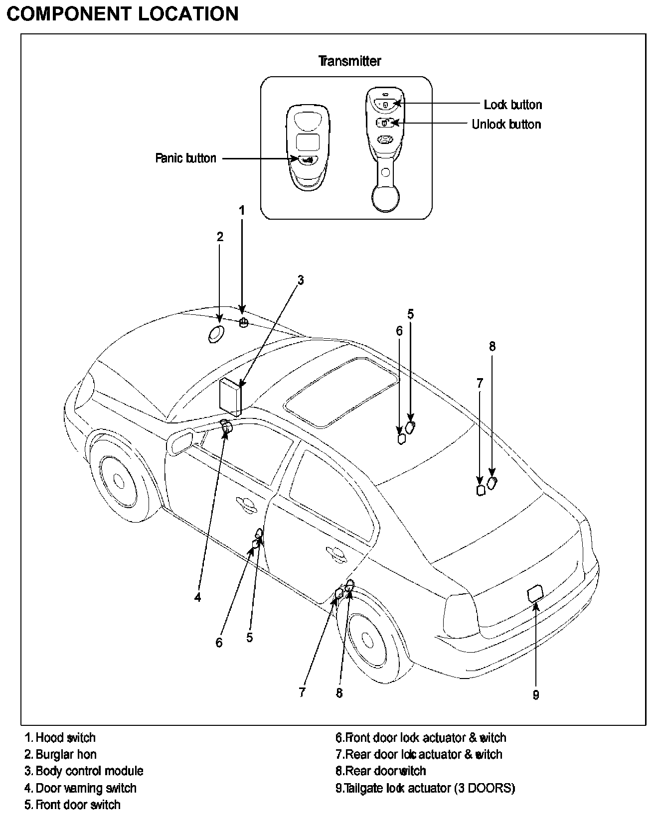 Keyless Entry & Burglar Alarm System Component Location: