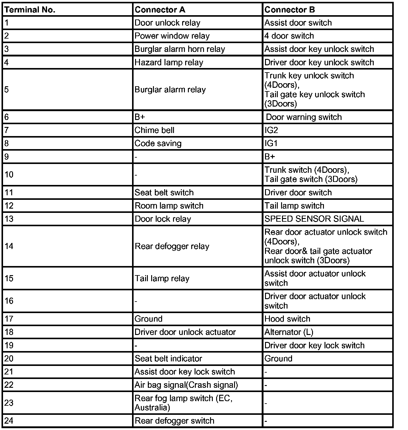 BCM Connector Terminals: