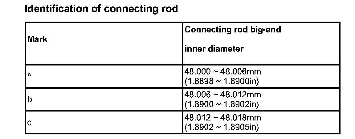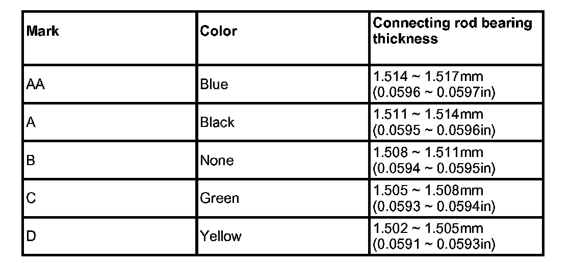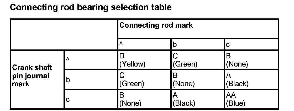 Connecting rod bearing selection table: