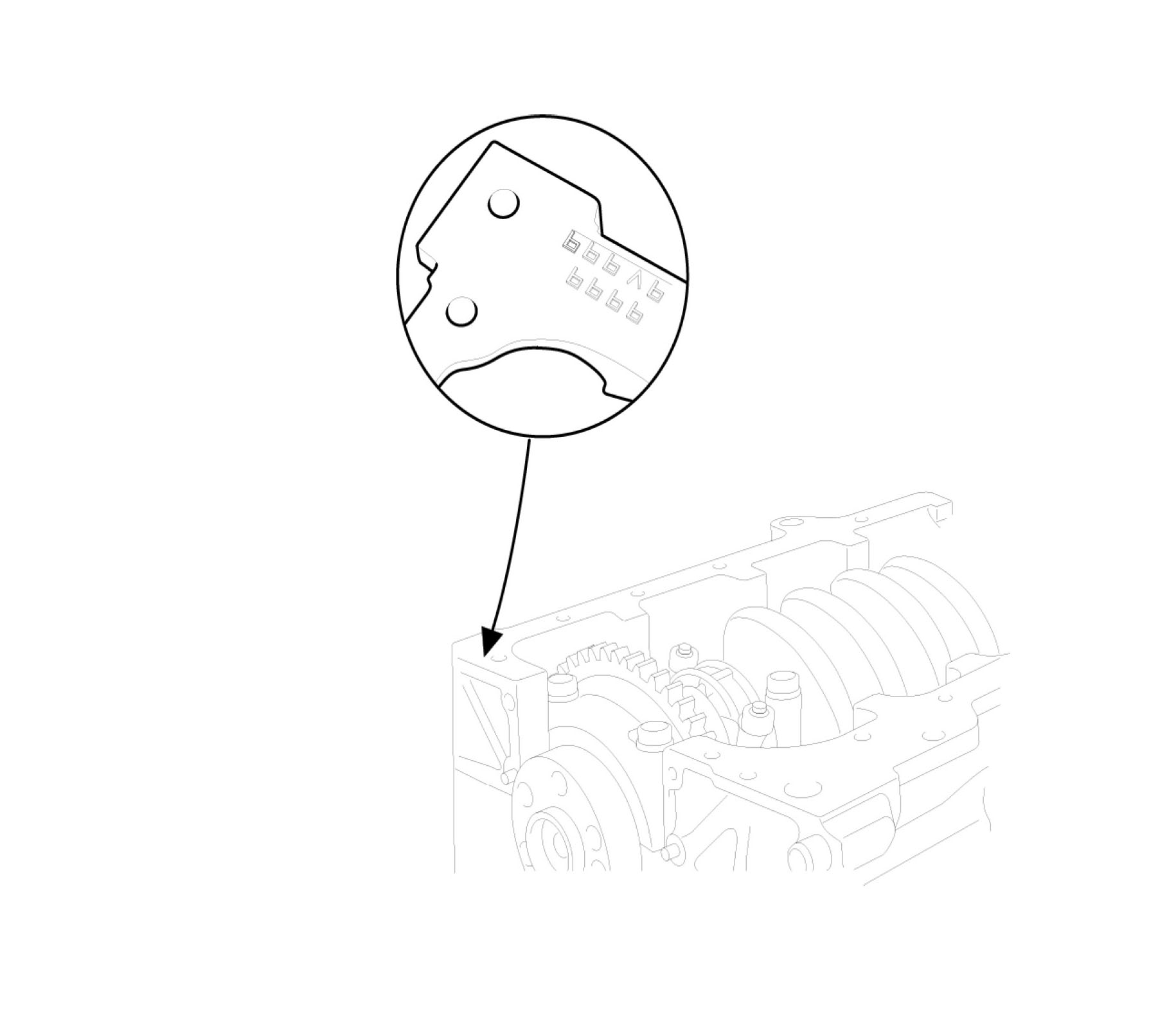 CAUTION: If the marks are indecipherable because of an accumulation of dirt and dust, do not scrub them with a wire brush or scraper. Clean them only with solvent or detergent. Cylinder block crankshaft journal bore mark location