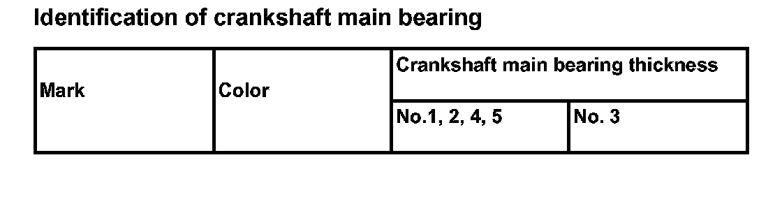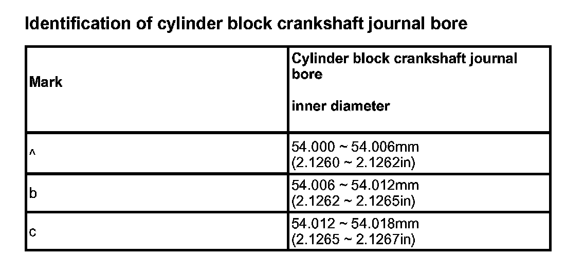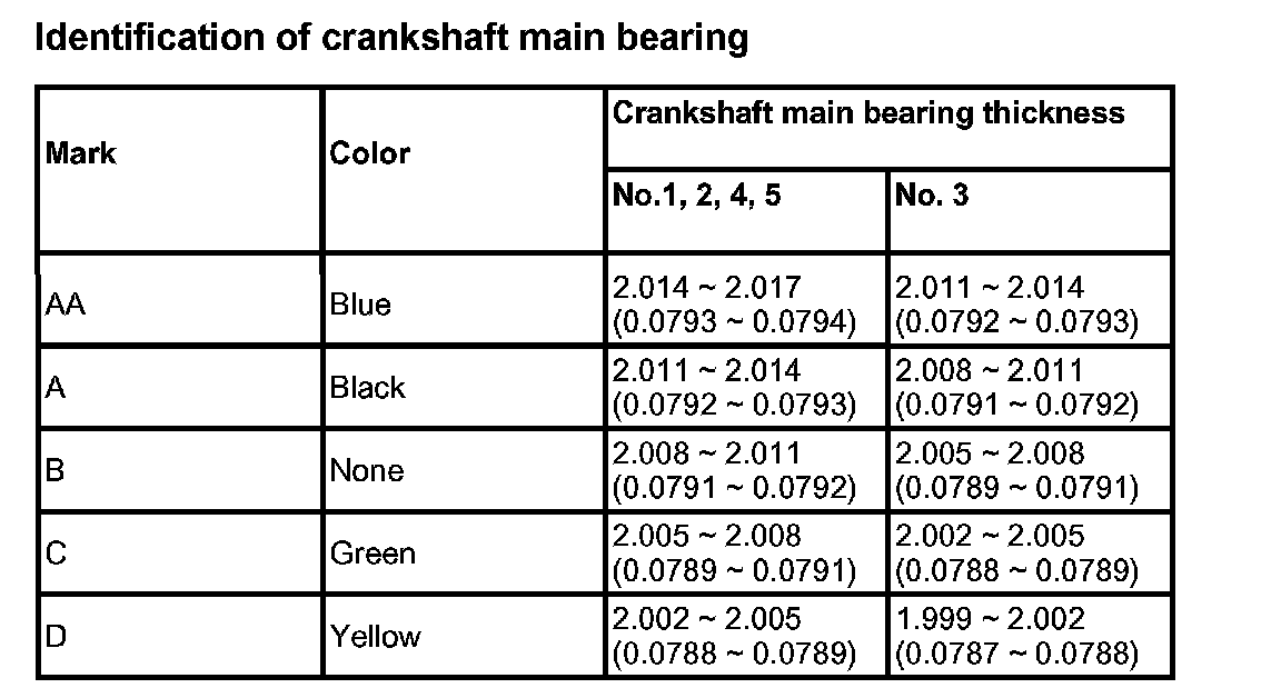 Crankshaft main bearing selection table: