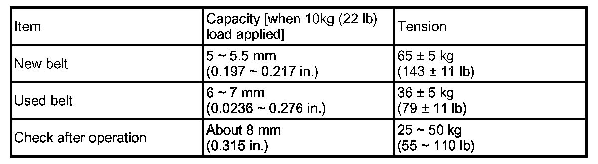 2. Apply a force of 98N (10 kgf, 22 lbf), and measure the deflection at the mid point (A) between the air condition compressor and crankshaft pulley.