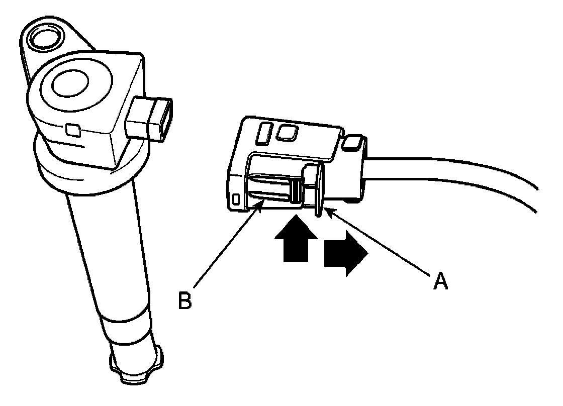 NOTE: When removing the ignition coil connector, pull the lock pin (A) and push the clip (B).