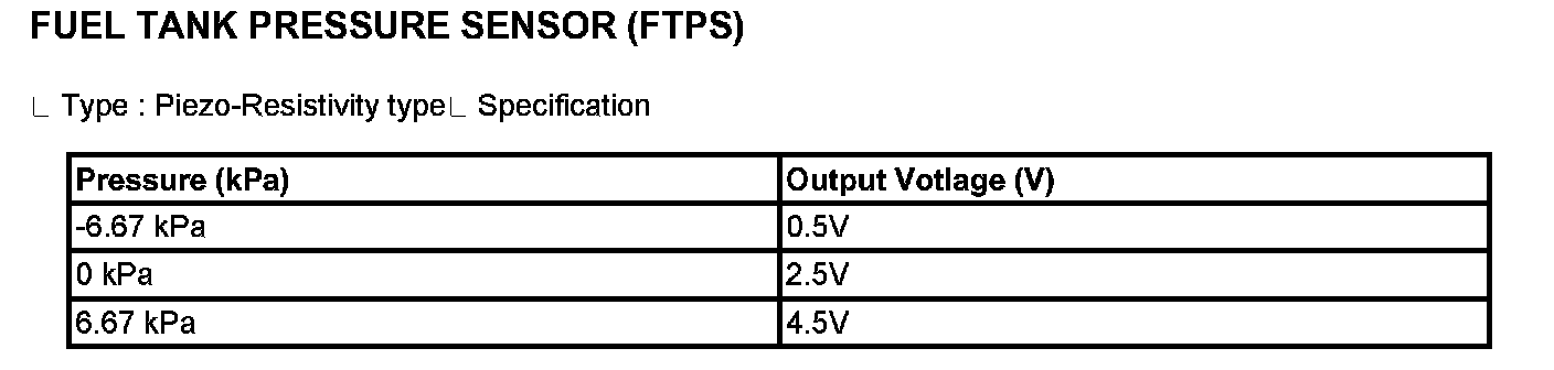 Fuel Tank Pressure Sensor (FTPS) - Specification: