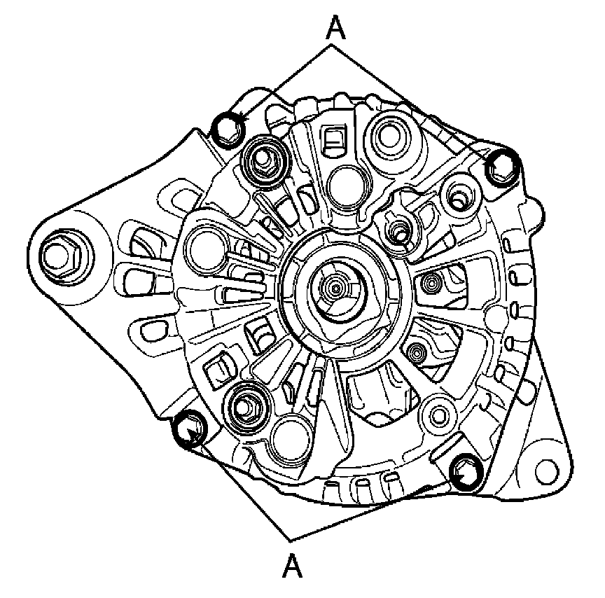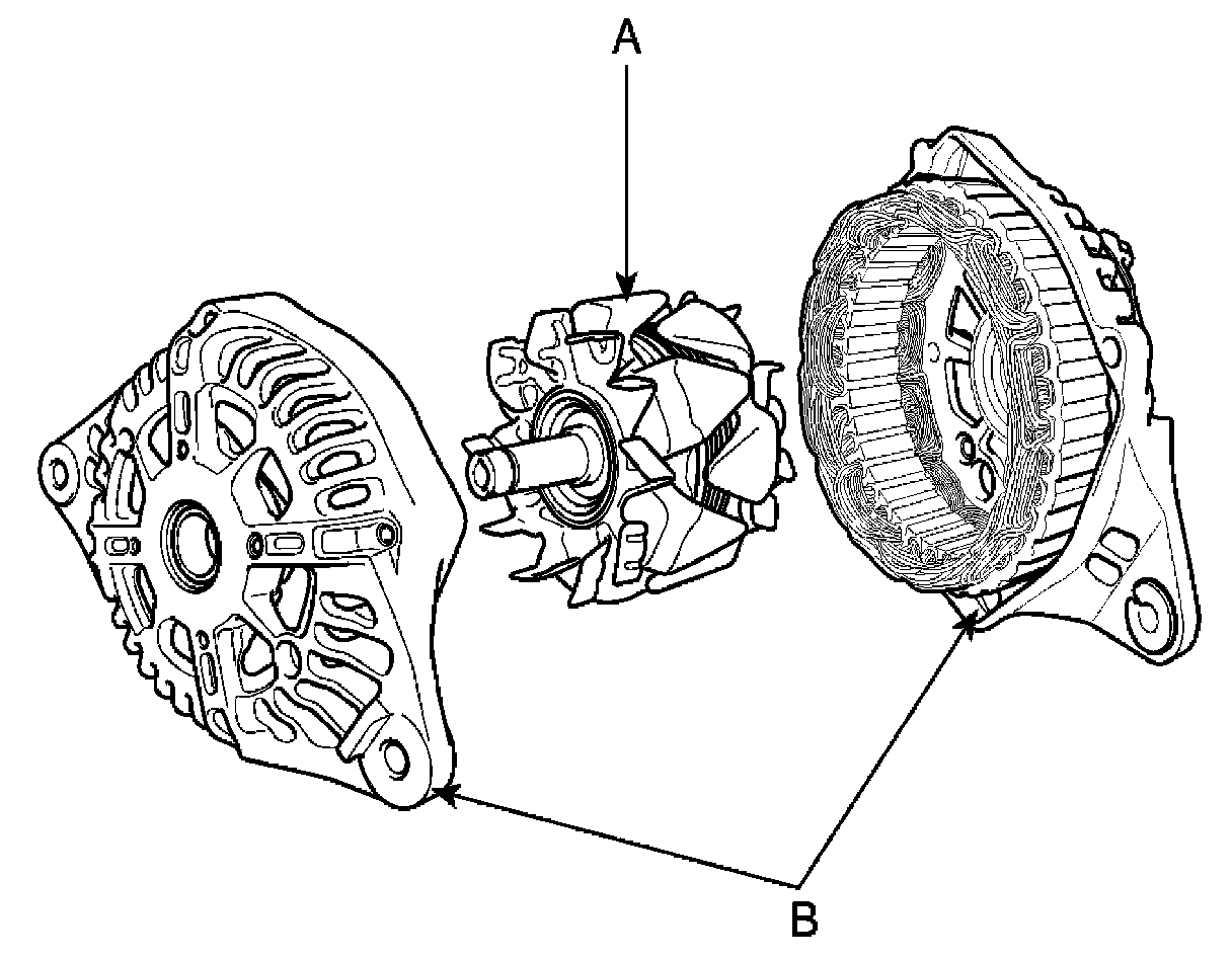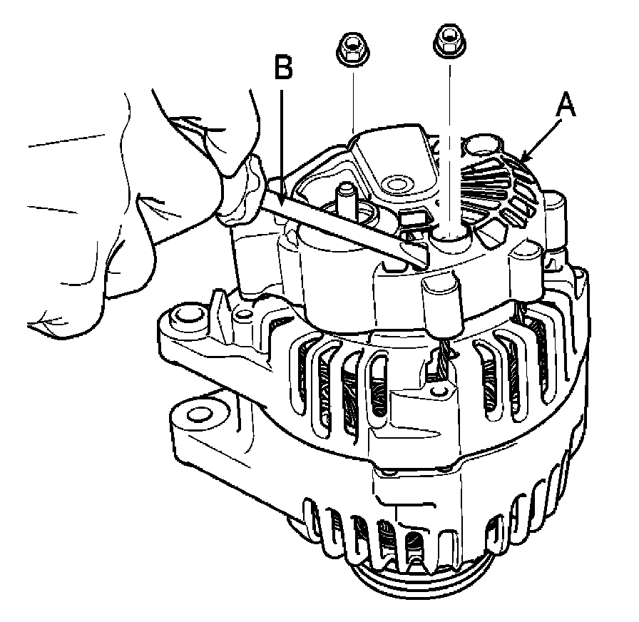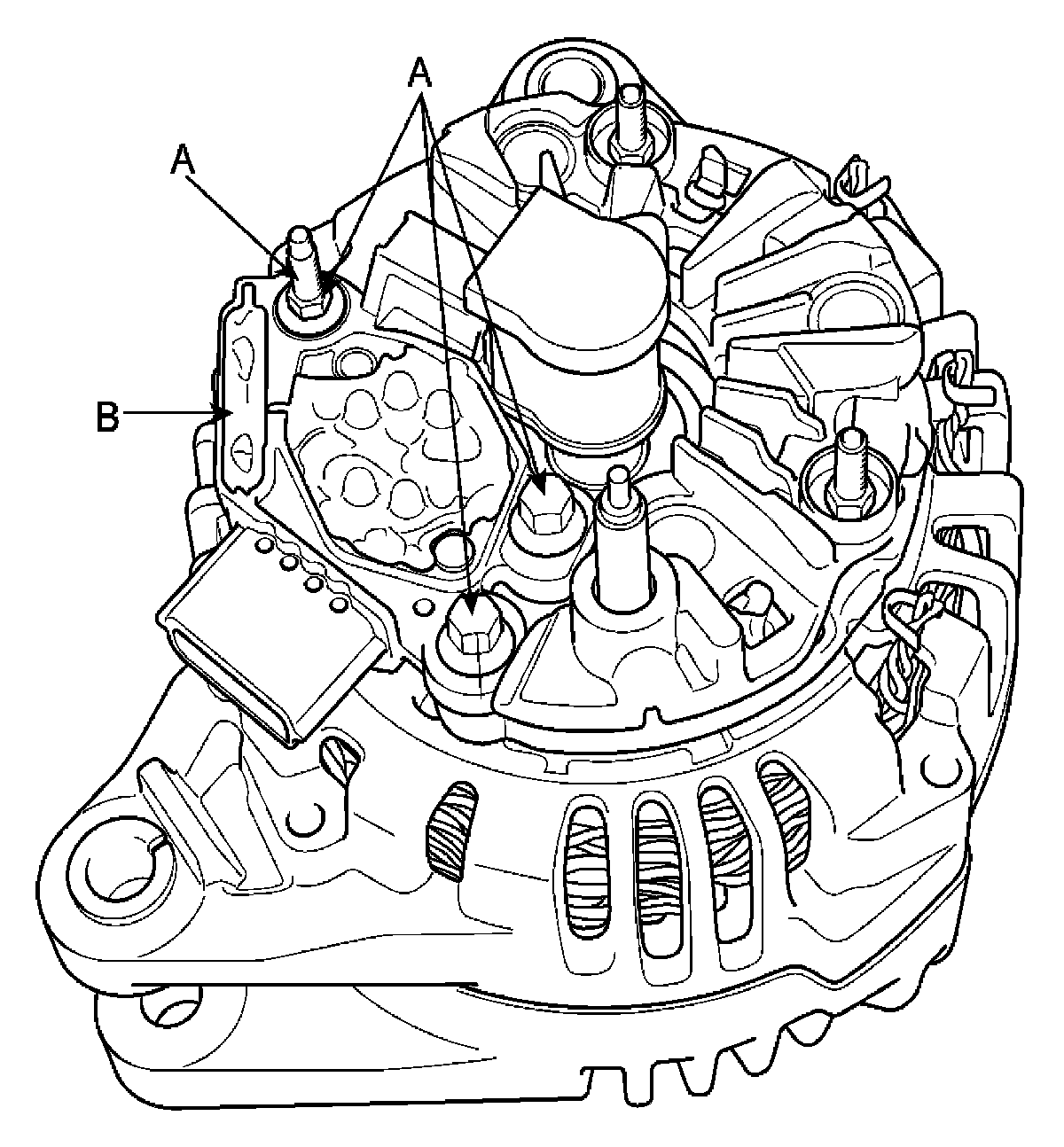 2. Loosen the mounting bolts (A) and disconnect the brush holder assembly (B).