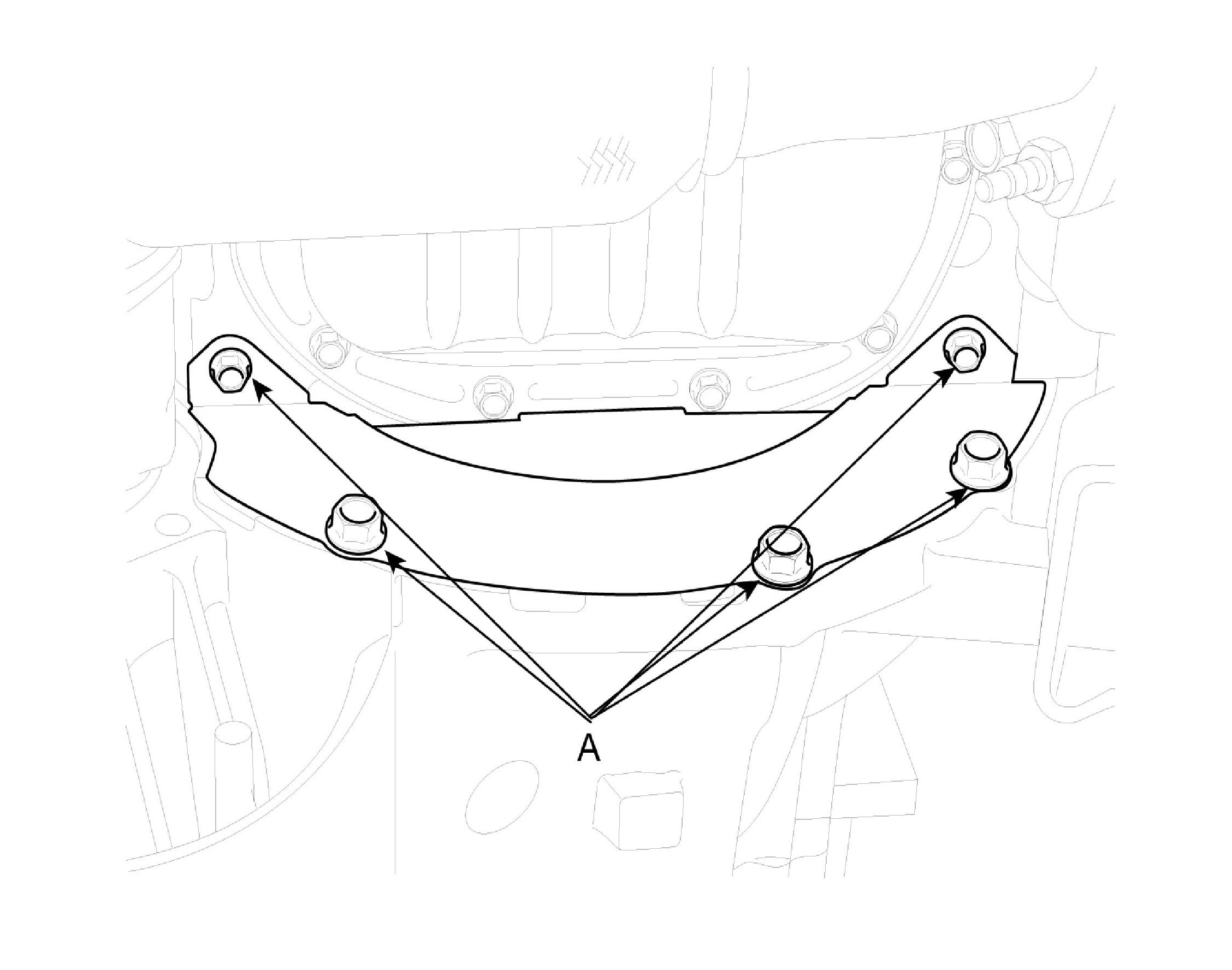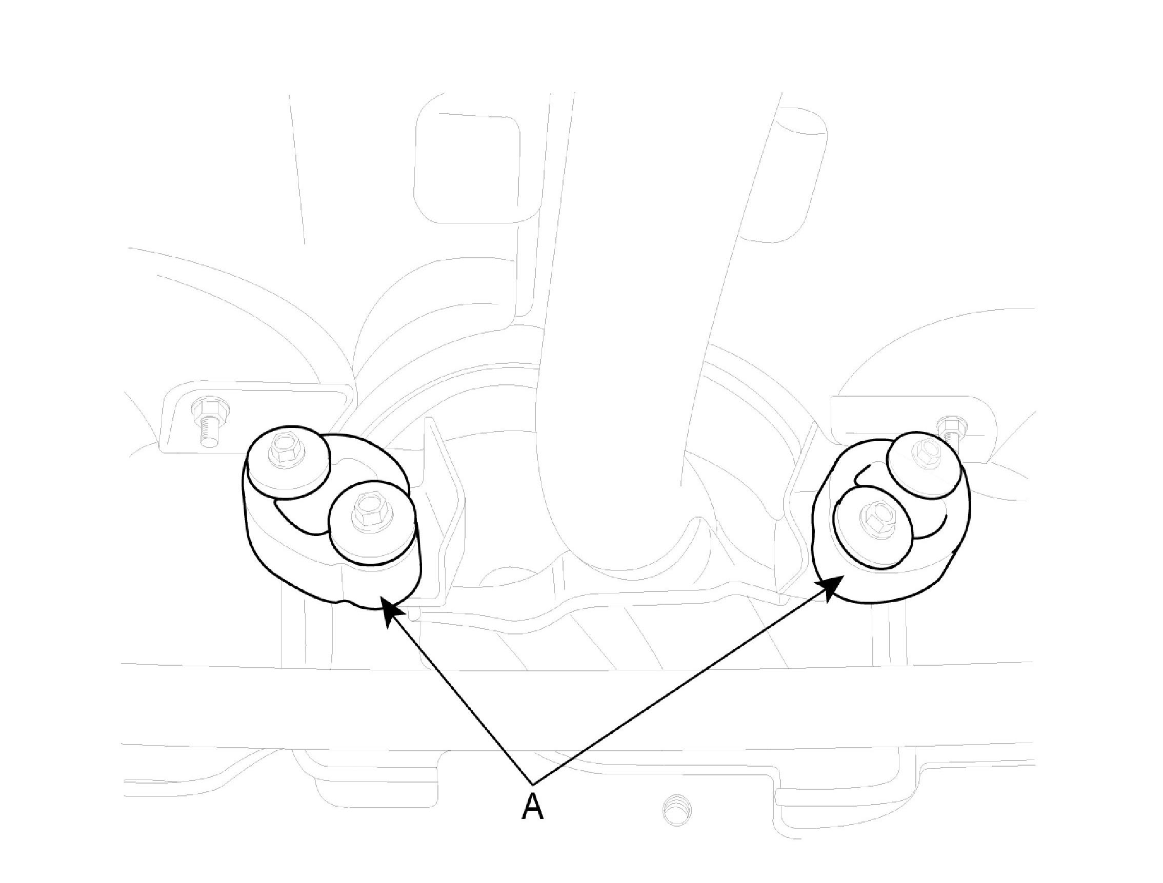 2. Install the transaxle lower mounting bolts (A).