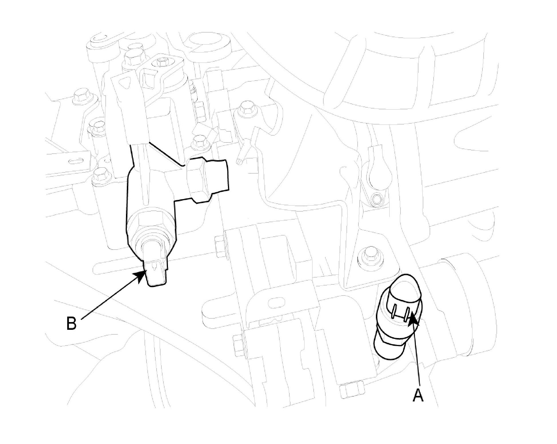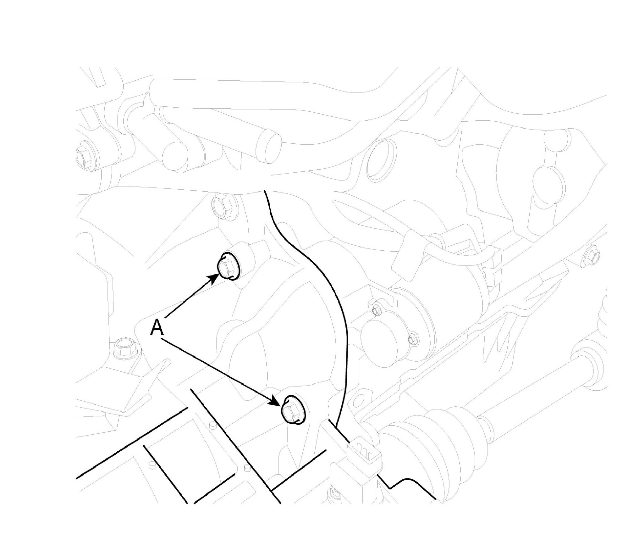 18. Install the engine start motor mounting bolts (A).