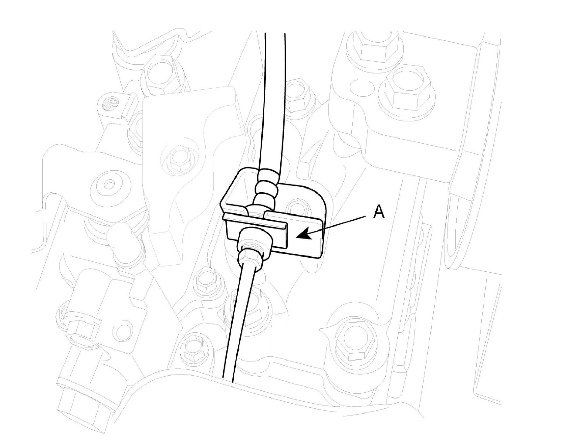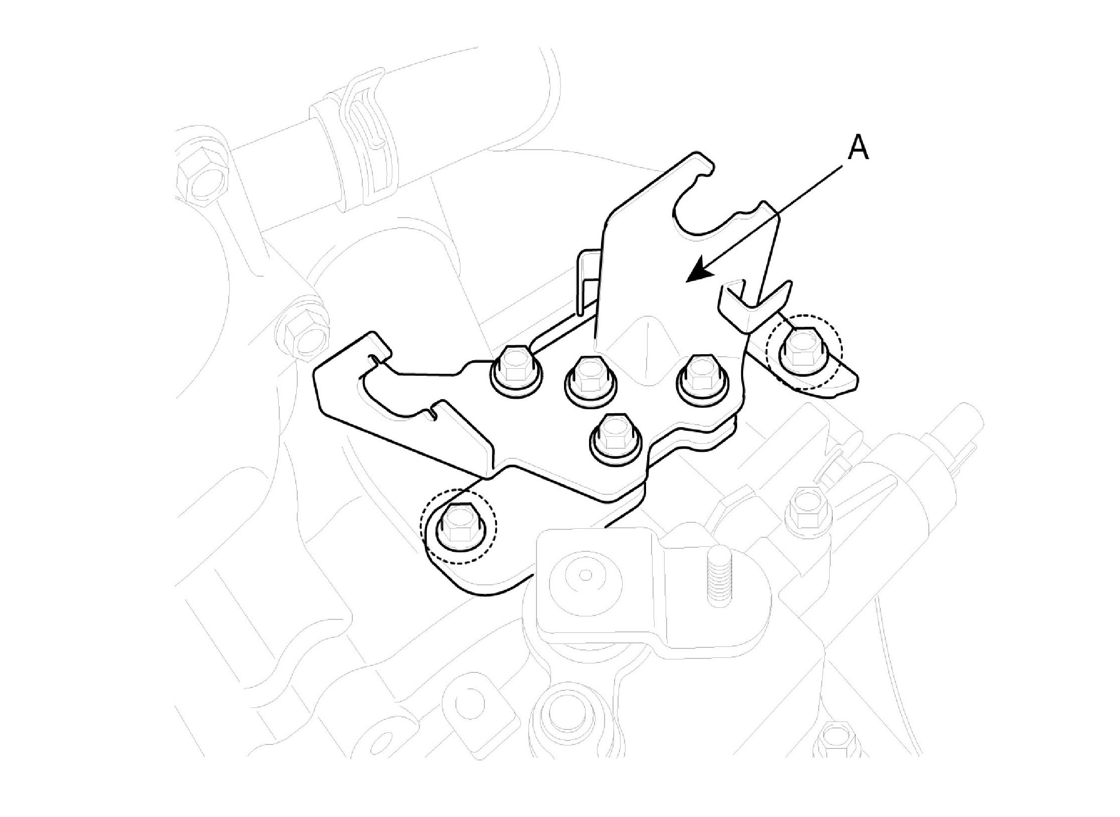 F. Install the tube bracket (A) from the transaxle.