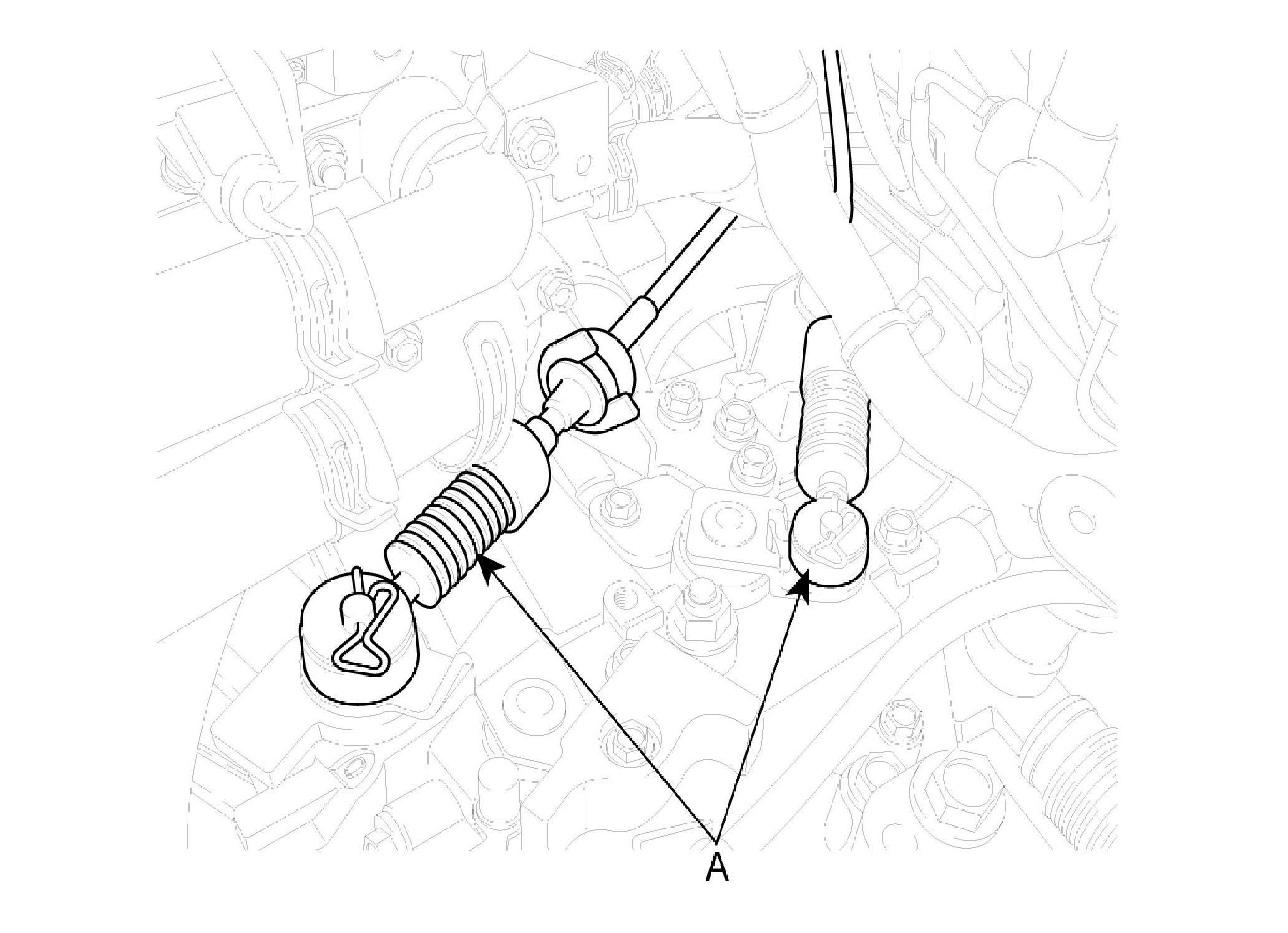C. Install the transaxle control cable (A).