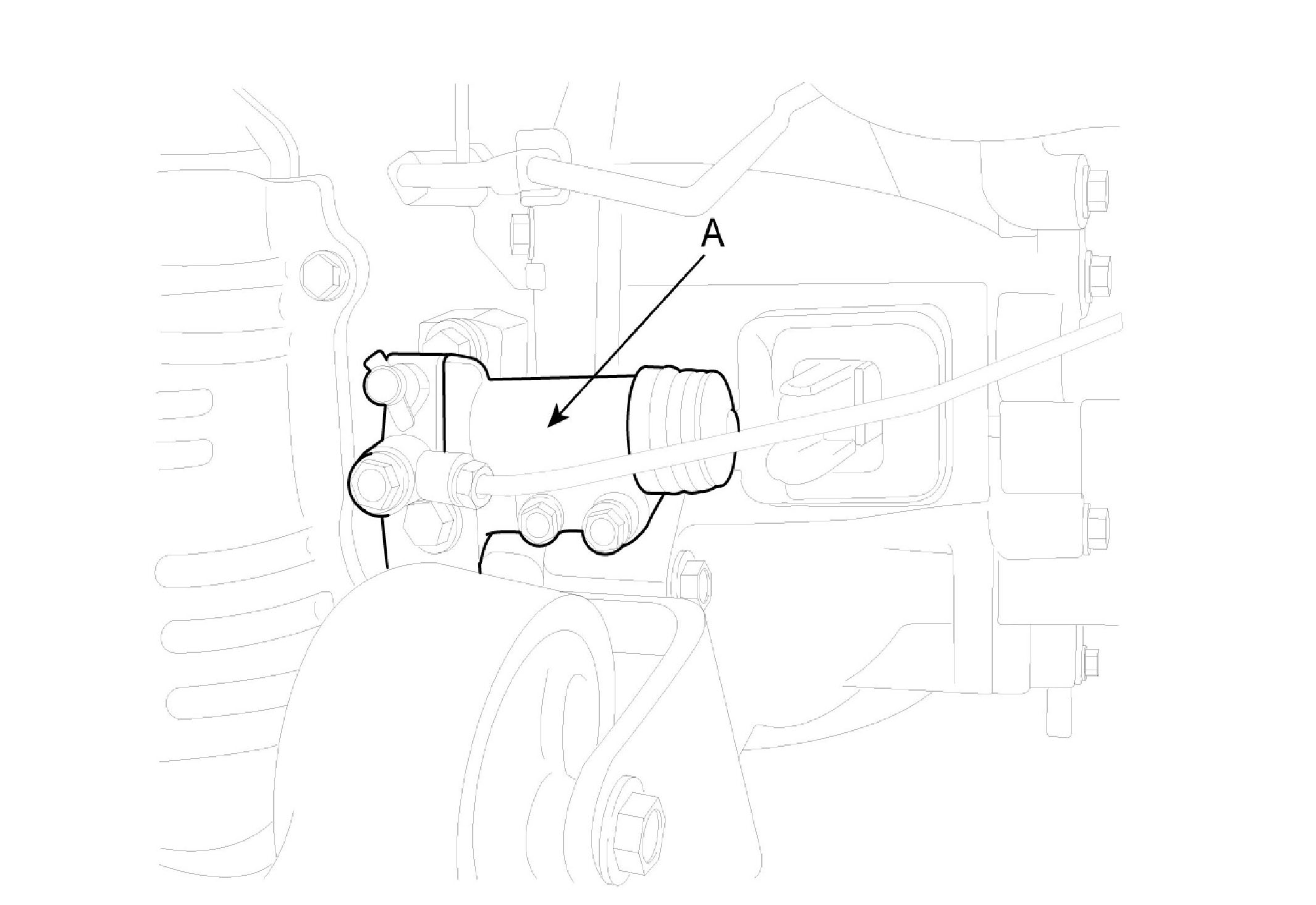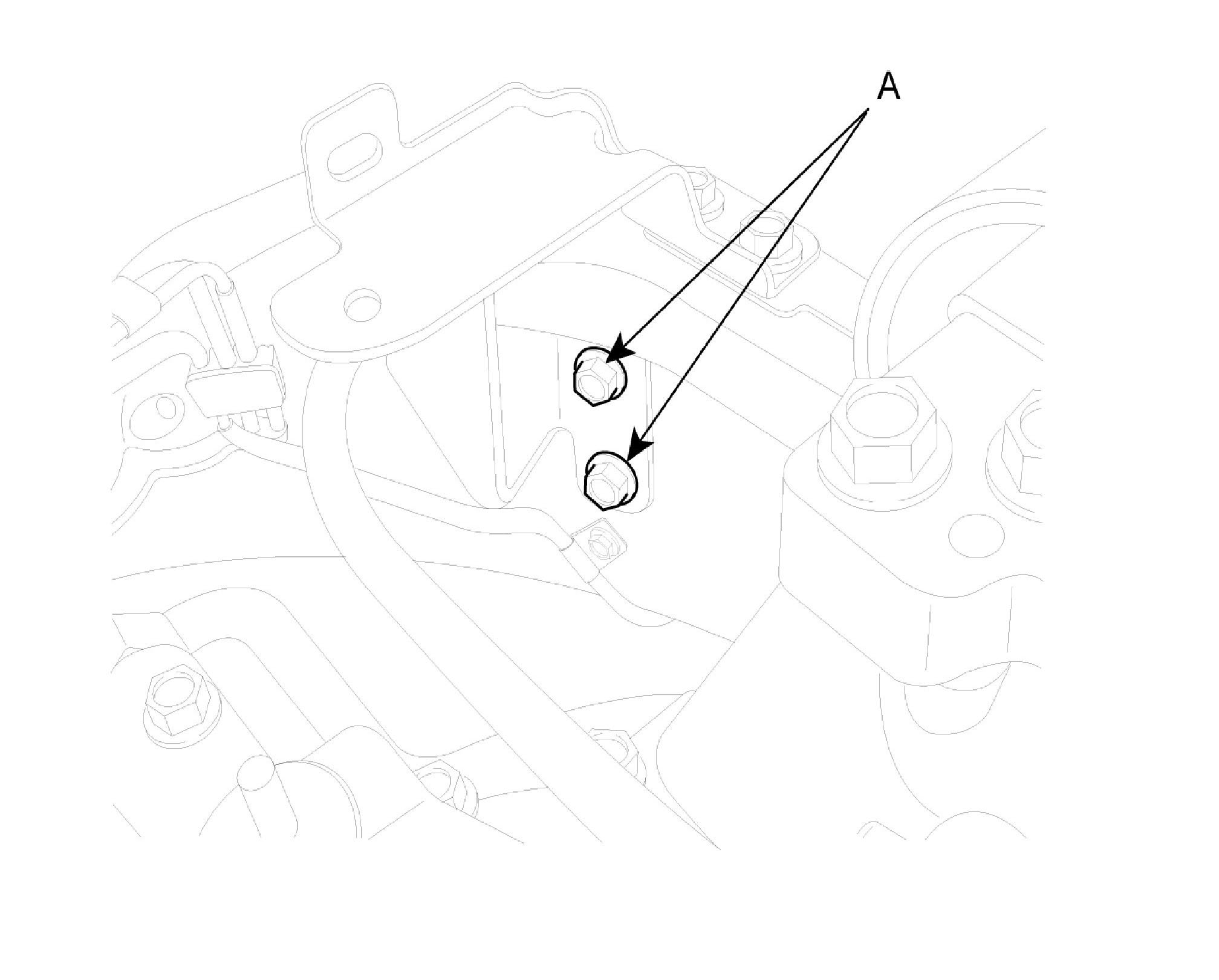 E. Install the two bolts (A) of the bracket holding the flexible hose.