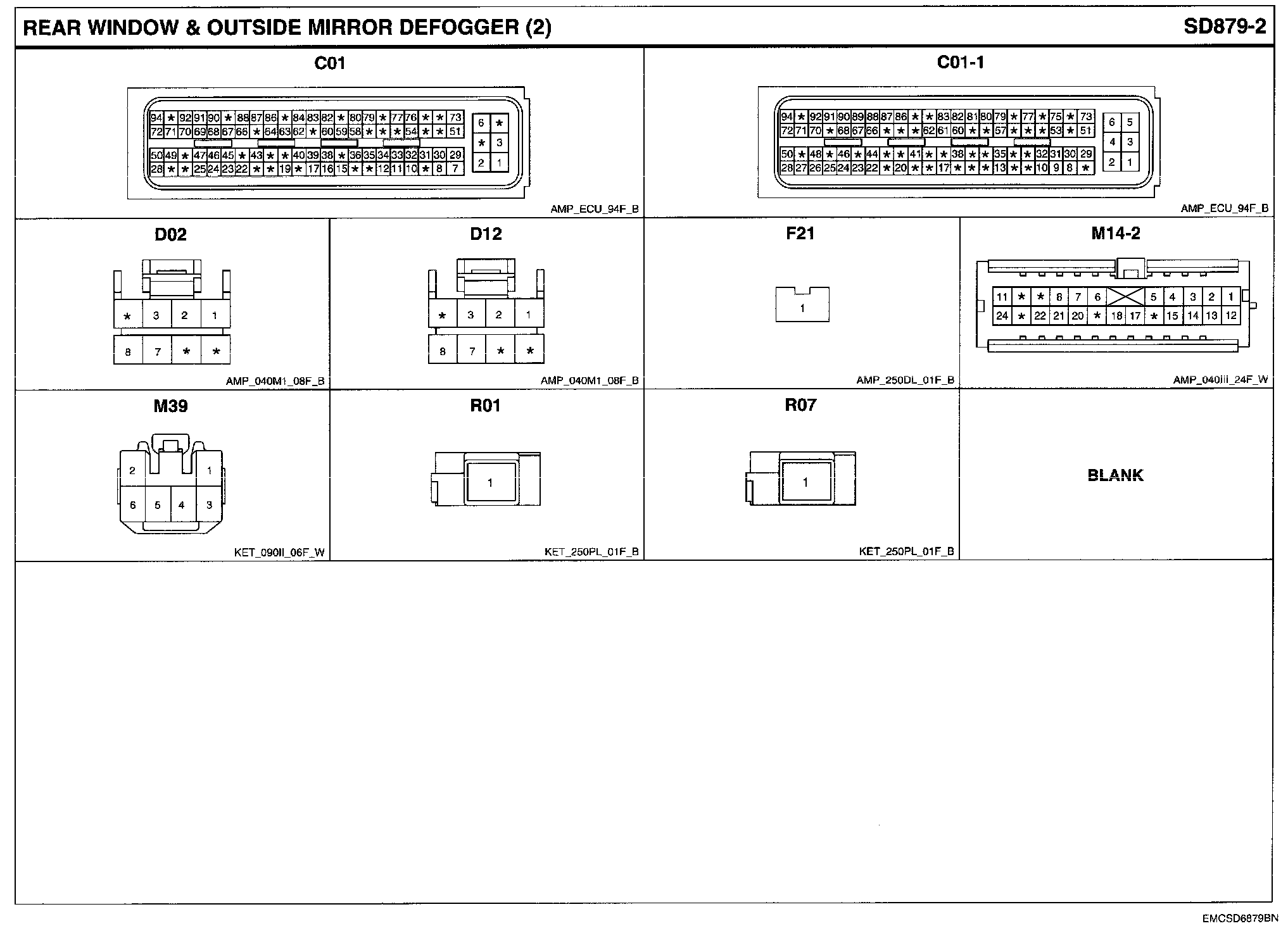 Rear Window & Outside Mirror Defogger Connector Pin Outs: