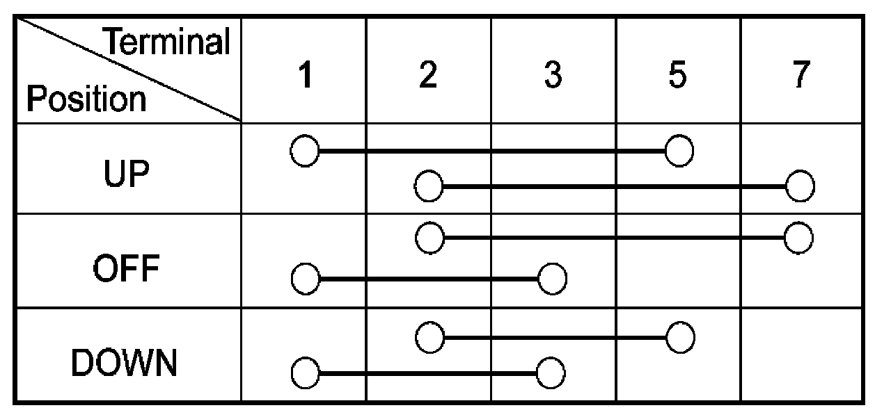 4. Check for continuity between the terminals in each switch position according to the table. If the continuity condition is not normal, replace the switch.